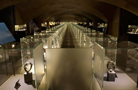 في ظلام القبو، عمد ’أليساندرو كولومبو‘- من أستوديو Cerri & Associati الذي عُني بتصميم المعرض، إلى استخدام المواد، الإضاءة والادوات الرقمية بمهارة تامة بغية ابتكار عرض يستقطب الزوّار ويُشعرهم بأنهم جزء من النماذج المذهلة المختارة التي تُحيط بهم، والتي خطّت التاريخ وحافظت على نجاح ساعات بانيراي على المستوى الدولي. في الواقع، تجسّد هذه النماذج لقوة وانتشار هذه العلامة التجارية، ارتباطها بالبحر، ابتكارها التصميمي المتواصل والمميز كما والتفوّق التقني الذي يتميز به مصنع نيوشاتل.