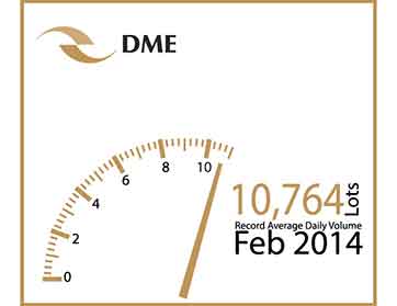 أعلنت بورصة دبي للطاقة (DME)، البورصة الدولية الأولى في منطقة الشرق الأوسط لعقود الطاقة الآجلة والسلع، تحقيق رقمٍ قياسيٍ في معدل حجم التداول اليومي بلغ 10,764 عقداً خلال فبراير الماضي، أي ما يعادل حوالى 10,764 مليون برميل من النفط الخام يومياً. واستطاعت البورصة بذلك تحقيق زيادة بنسبة 84% في فبراير مقارنة بالشهر نفسه من العام الماضي، وزيادة بنسبة 32% عن الشهر المنصرم.