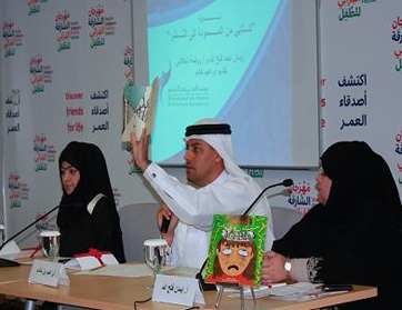 واستهل إبراهيم خادم تقديم ورقة العمل، بشكر القائمين على معرض الشارقة القرائي للطفل، وأشاد بالدور الفعال الذي تبذله الجهة المنظمة من أجل جذب الأطفال وتقريب القراءة لهم عن طريق عدد من الفعاليات الترفيهية والتعليمية. وبعد ذلك قدم الكاتبة الإماراتية إيمان فتح الله، مؤلفة قصة "عالم بلا ألوان". وهي خريجة كلية التقنية العليا للطالبات 2009، تخصص بكالوريوس تربية لغة إنجليزية. وتعمل حاليا معلمة لغة إنجليزية في مدرسة القيم النموذجية في دبي.