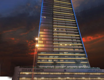 وينتصب "أوشن هايتس" بارتفاع 84 طابقاً عند مدخل مرسى دبي، مطلاً على شارع الصفوح. وقد تحول المشروع خلال فترة زمنية قصيرة إلى واحد من أبرز المعالم العمرانية في المنطقة، بفضل تصميمه الهندسي الملتف والمبتكر.