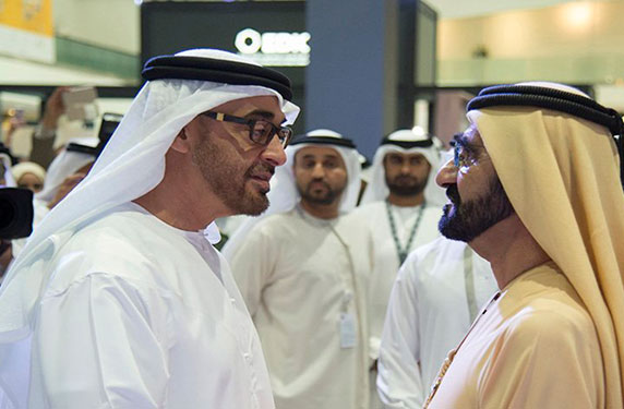 التقى صاحب السمو الشيخ محمد بن راشد آل مكتوم نائب رئيس الدولة رئيس مجلس الوزراء حاكم دبي "رعاه الله" أخاه صاحب السمو الشيخ محمد بن زايد آل نهيان ولي عهد أبوظبي نائب القائد الأعلى للقوات المسلحة بحضور سمو الشيخ حمدان بن محمد بن راشد آل مكتوم ولي عهد دبي أثناء تجوالهما في ردهات معرض " أيدكس".