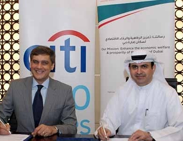 وقعت دائرة التنمية الاقتصادية في دبي مذكرة تفاهم مع دائرة خدمات المعاملات العالمية التابعة لمجموعة سيتي المصرفية تهدف إلى تعزيز جاذبية إمارة دبي كمركز إقليمي للاستثمار وتجارة التجزئة والتنوع الاقتصادي، إلى جانب تطوير سبل التعاون بين الجانبين في مجال تحفيز نمو قطاع المشاريع الصغيرة والمتوسطة في دبي.
