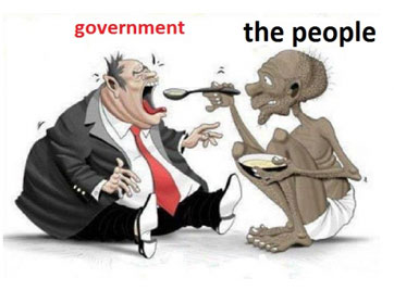 وعمد القراصنة الى وضع صورة على الصفحة الرئيسية، توحي بأن "الشعب الفقير والجائع يطعم الحكومة المتخمة".