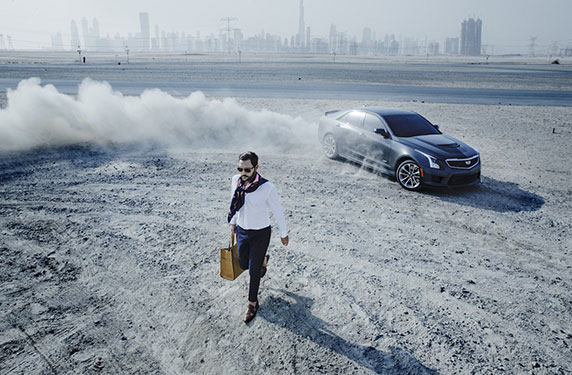 في جزء من نشاطاتها المرافقة لإطلاق ATS-V الأولى من نوعها، رسمت علامة كاديلاك تصوراً مميزاً وفريداً من نوعه في عالم الموضة ونفّذته عبر جلسة تصوير مثيرة داخل وحول سيارة ATS-V خلال تنفيذها استعراض دريفت.