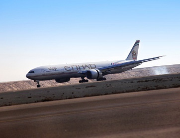 إقلاع طائرة الاتحاد للطيران الأولى من طراز بوينغ 777 ذات الثلاث درجات