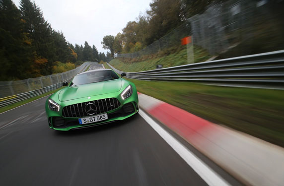 بانطلاقها عبر مسارات "الجحيم الأخضر" في غضون 7:10.9 دقيقة فقط، كانت سيارة GT R من مرسيدس-AMG أسرع من أي سيارة رياضية أخرى تم اختبارها على الإطلاق. من هنا، تستحق هذه السيارة التي تولد قوة مقدارها 430 كيلووات (585 حصان) لقبها الجدير "وحش الجحيم الأخضر". إن اجتياز دورة على حلبة "نوردشلايفه" الأسطورية، التي تصنّف بأنها أصعب حلبات السباق في العالم، يعتبر بمثابة الاختبار الأكثر شمولية لأي سيارة رياضية.