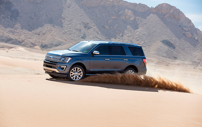 مع طوله الذي يوازي 5.3 متر وعرضه الذي يصل الى 2.1 متر، يعتبَر إكسبيديشن من الجيل الجديد بسهولة المركبة ذات القدرة على خوض الطرقات الصحراوية والتي تساع لثمانية ركاب بالغين الأكثر رحابة في السوق. وبفضل محرّك EcoBoost الأفضل في الفئة الذي ينتج قوة 400 حصان* وعزم دوران قدره 650 نيوتن متر*، وناقل الحركة الحصري في الفئة بـ 10 سرعات، ونظام الدفع الرباعي المتطوّر مع علبة لتبديل السرعات ثنائيّة السرعة، فإنّ إكسبيديشن مجهّز لمواجهة أقسى الظروف في طرقات الشرق الأوسط. وتصبح السيطرة على أي سطح سهلة بقدر تحريك قرص - أكان ذاك السطح رمالاً غير ثابتة أو طريقاً معبّدة - بفضل نظام القيادة بحسب التضاريس TMS."