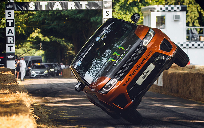 ورفع جرانت الجانب الأيسر لسيارة رينج روڤر سبورت SVR بالسير على منحدر مخصص لذلك، قبل أن تتوازن على عجلتين فقط وتواصل مسارها بسرعة وصلت إلى 60 ميلاً في الساعة على مضمار جودوود الشهير مسجلةً بذلك رقماً قياسياً جديداً ضمن موسوعة جينيس للأرقام القياسية.