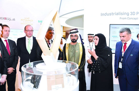 وعلى هامش القمة، شهد صاحب السمو الشيخ محمد بن راشد، مراسم التوقيع على مذكرة تفاهم ثلاثية بين مؤسسة دبي للمستقبل وشركة مبادلة للتنمية وشركة جنرال إلكتريك العالمية، يتم بموجبها إنشاء مصنعين في الإمارات سيكونان الأولين من نوعهما في المنطقة لتطوير مشاريع الطباعة ثلاثية الأبعاد.