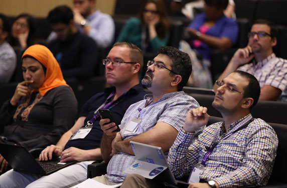 واجتمع الخبراء والمهتمون بالتكنولوجيا من مختلف أرجاء العالم في جامعة نيويورك أبوظبي على مدى ثلاثة أيام بدءاً من 14 أبريل، وتمّ توزيع المشتركين ضمن عشرة فرق يشرف على كلٍّ واحدٍ منها أشهر الأساتذة في علوم الحاسوب الدولية ومؤسسو المشاريع الناشئة والناجحة وأفضل الأخصائيين في مجال العلوم التقنية وممولو المشاريع. وكانت من بينهم فرح شموط، أبرز خريجات جامعة نيويورك أبوظبي والفائزة بمسابقة ’الهاكاثون‘ وطالبة الدكتوراه في جامعة أوكسفورد، والتي أشرفت على الفريق المسؤول عن خدمة ’تسلم‘ الحائزة على جائزة اختيار الجمهور.