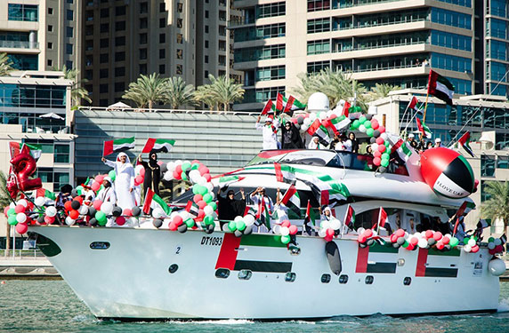 ينظم "نادي مرسى دبي لليخوت"، مسيرة للقوارب بمناسبة اليوم الوطني الثالث والأربعين لدولة الإمارات العربية المتحدة، في أجواء احتفالية مميزة تحتفي بروح الاتحاد، حيث سيقوم مالكو اليخوت في النادي بتزيين قواربهم بديكورات مستوحاة من المناسبة في الحدث الذي يقام بين الساعة 12 ظهراً و6 مساءً في 2 ديسمبر 2014.